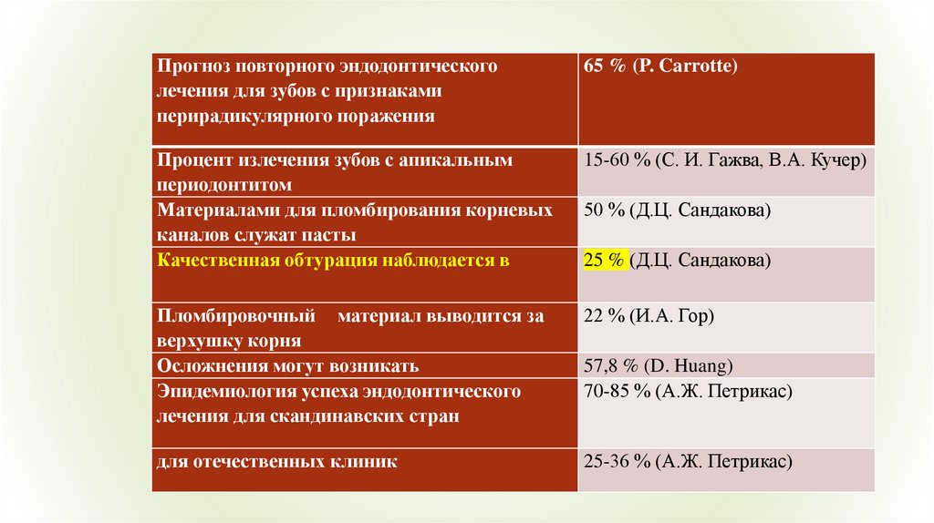 Прогноз повторного эндодонтическоголечения для зубов с признаками