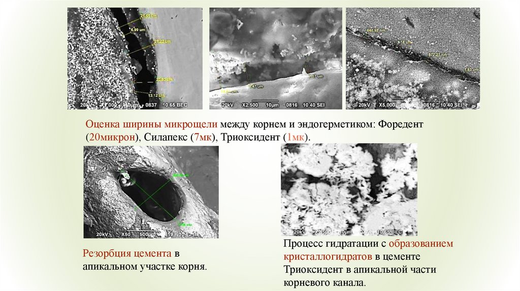 пломбировочных материалов с использованием растровой электронной микроскопии.