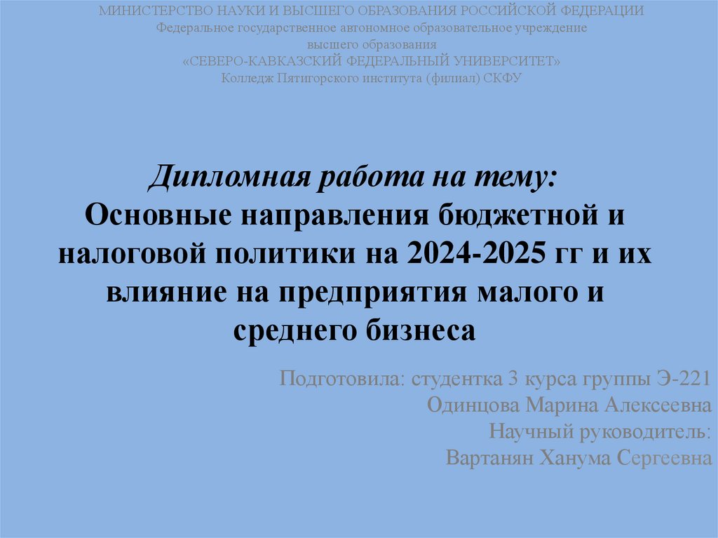 1. Дипломная работа на тему: Основные направления бюджетной и налоговой политики на 2024-2025 гг и их влияние на предприятия