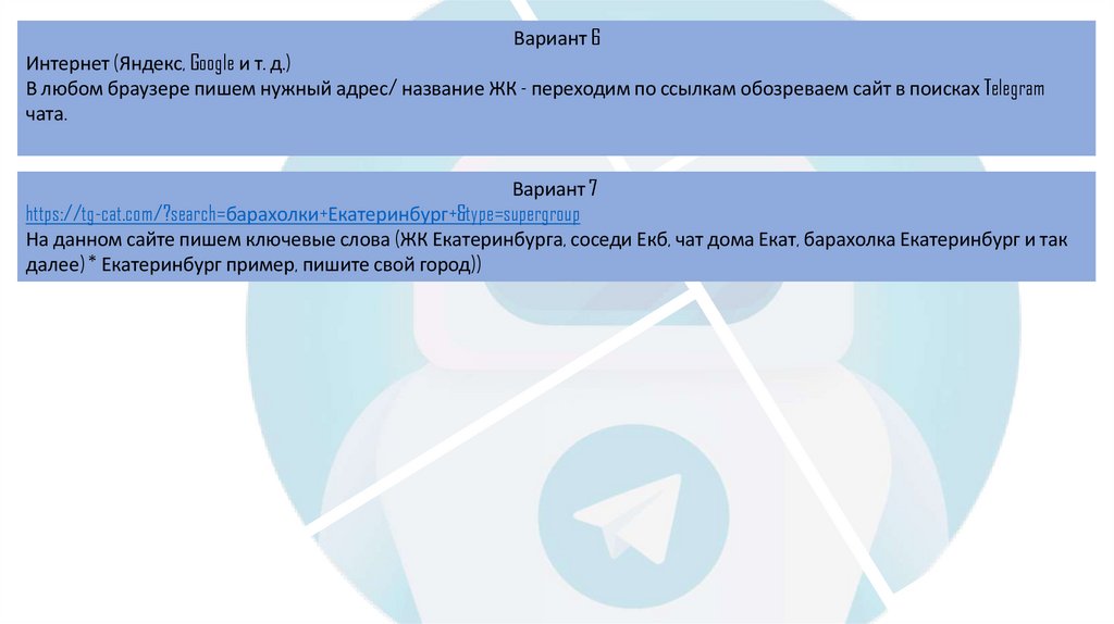 Инструкция для поиска telegram-чатов ЖК, Барахолок и прочих