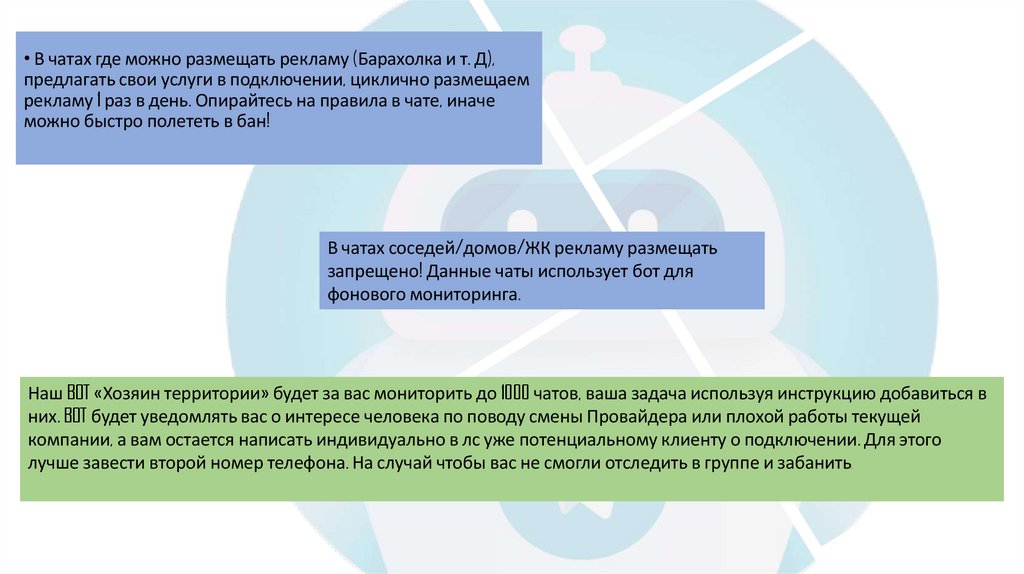 Наш BOT «Хозяин территории» будет за вас мониторить до 1000 чатов, ваша задача используя инструкцию добавиться в