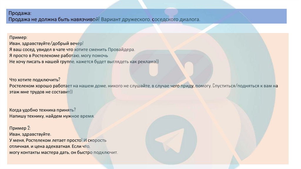 Продажа:Продажа не должна быть навязчивой! Вариант дружеского, соседского диалога.