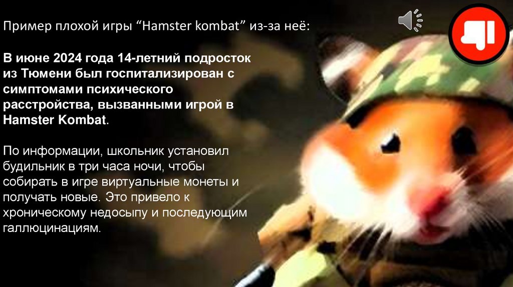 Пример плохой игры “Hamster kombat” из-за неё:В июне 2024 года 14-летний подросток