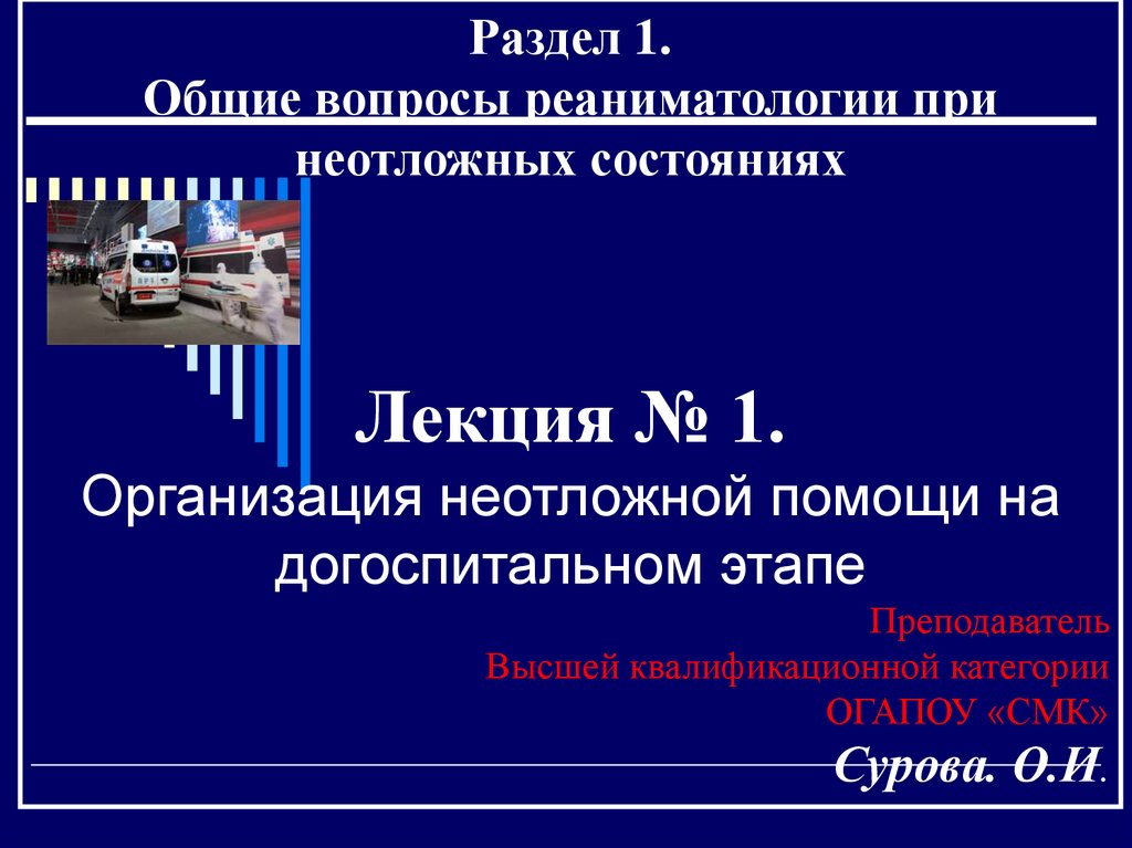 Организация неотложной помощи на догоспитальном этапе (Лекция №1)