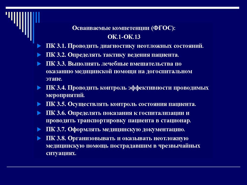 Осваиваемые компетенции (ФГОС):ОК.1-ОК.13