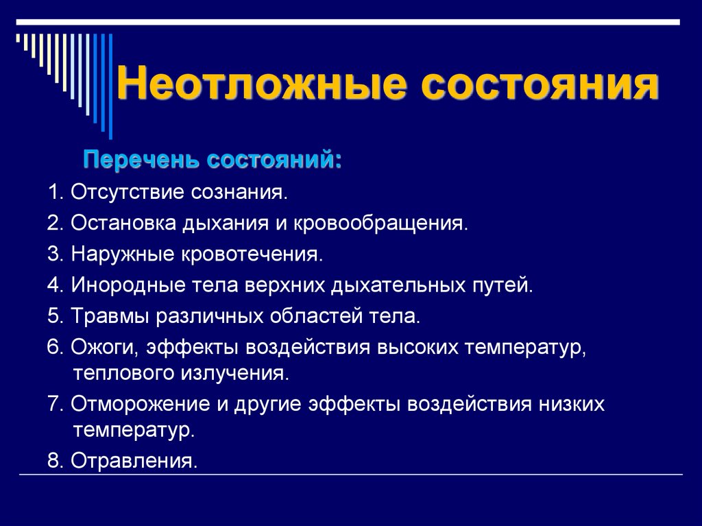 Дайте определение неотложных состоянийПеречислите наиболее частые неотложные