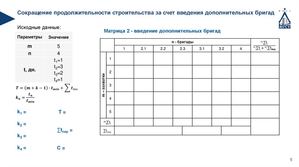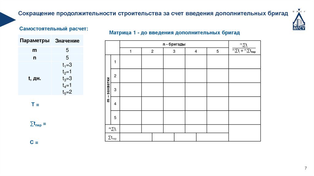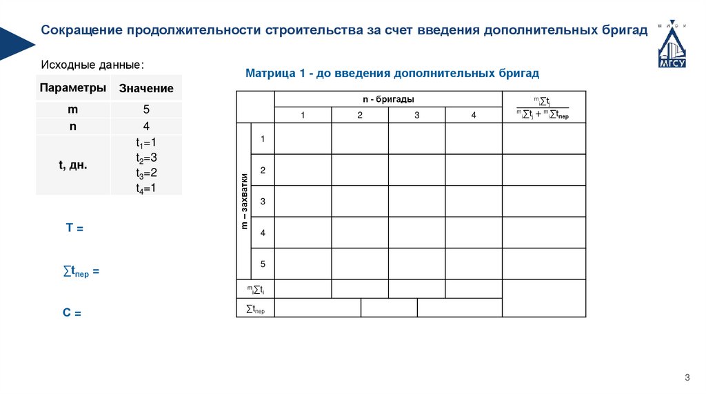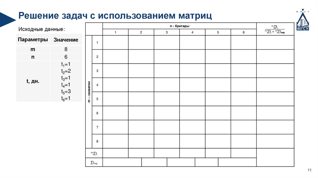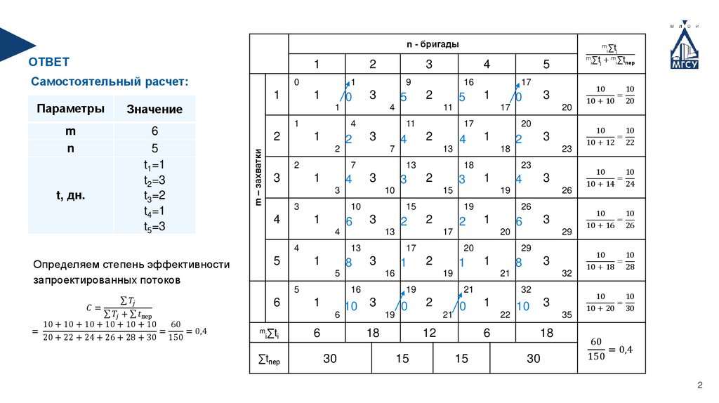 Расчет потоков с использованием матриц. Ритмичные потоки (2)