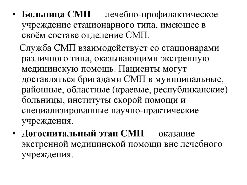 • СМП (син. экстренная медицинская помощь), как видмедицинской помощи — это комплекс осуществляемых