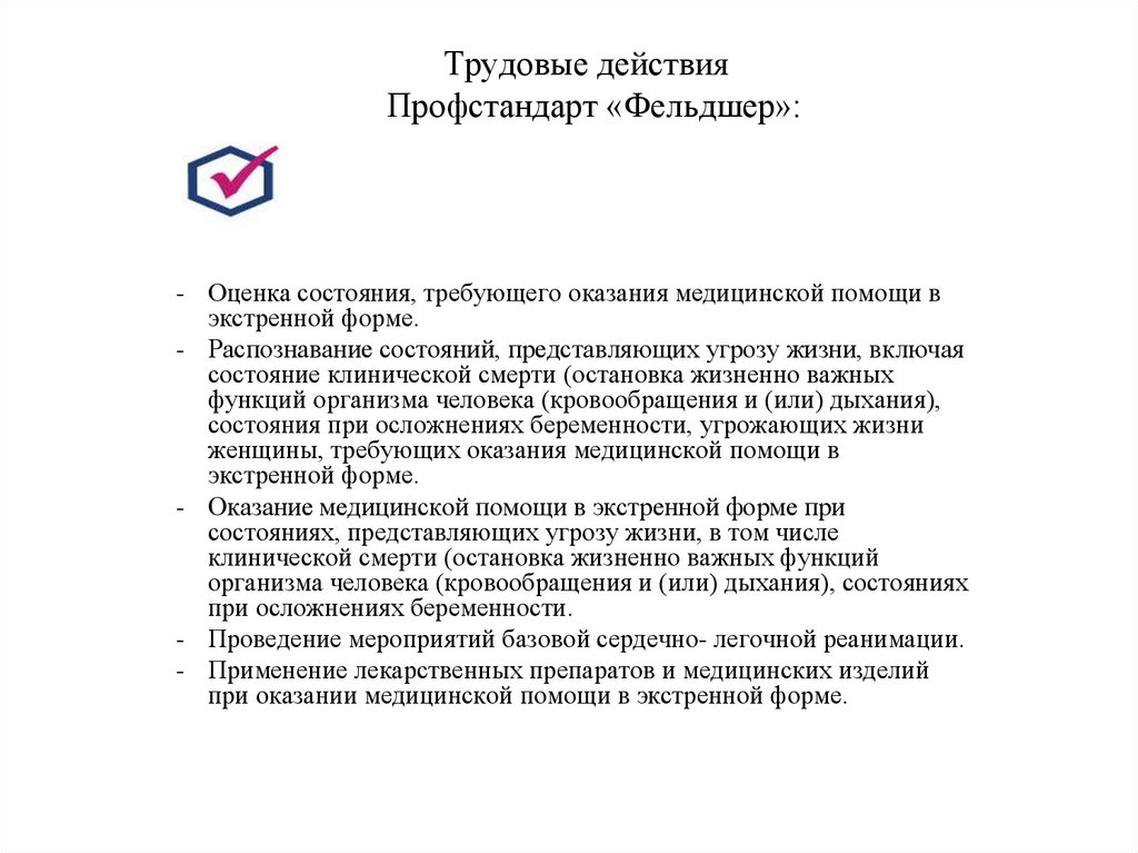 4. Трудовые действия Профстандарт «Фельдшер»: