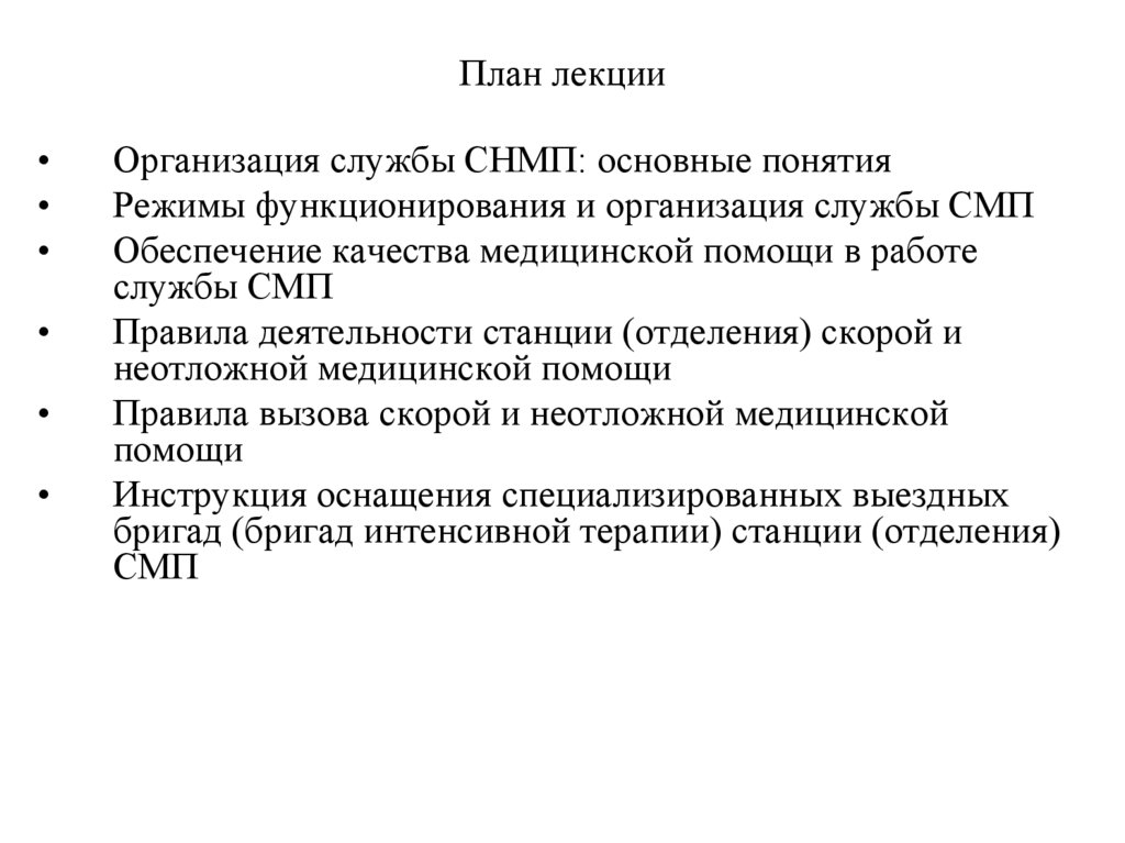 • После завершения лекции студенты должныориентироваться в вопросах организации службы скорой и