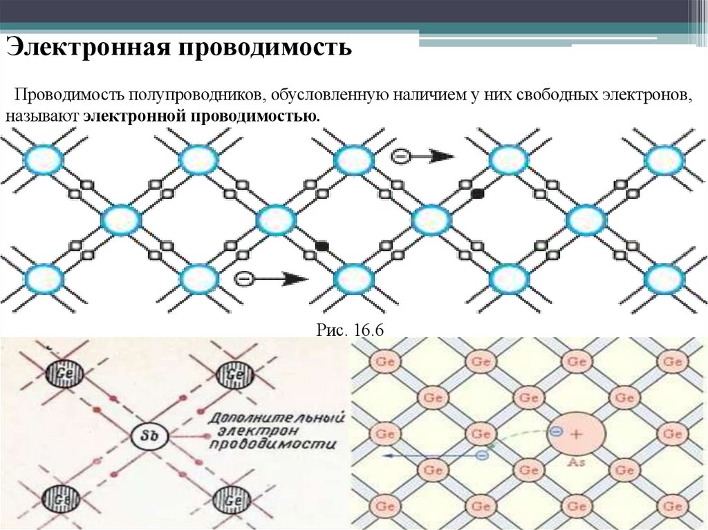 Рис. 16.55. Электронная проводимость Проводимость полупроводников, обусловленную наличием у них свободных электронов, называют электронной