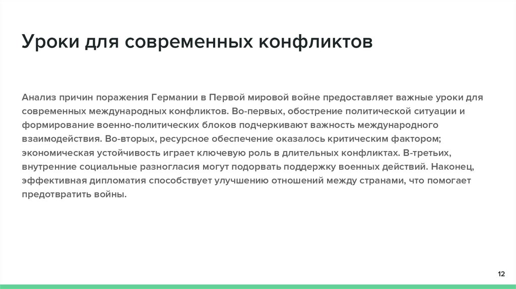Уроки для современных конфликтовАнализ причин поражения Германии в Первой мировой войне предоставляет важные уроки для