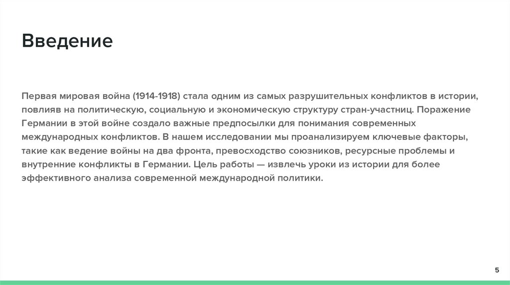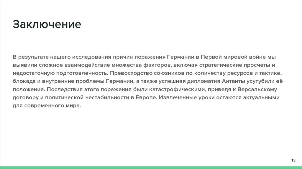 ЗаключениеВ результате нашего исследования причин поражения Германии в Первой мировой войне мы