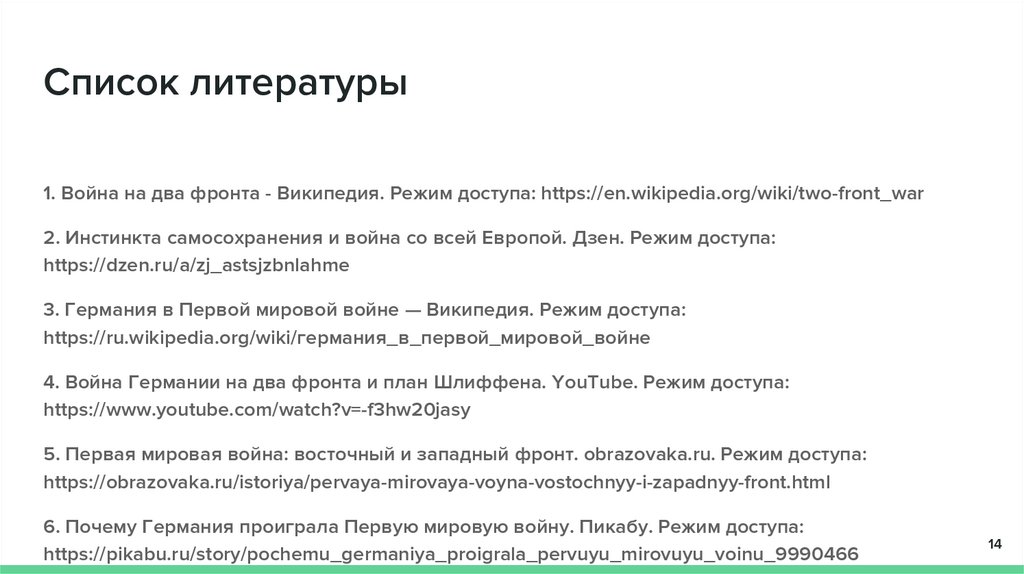 Список литературы1. Война на два фронта - Википедия. Режим доступа: https://en.wikipedia.org/wiki/two-front_war