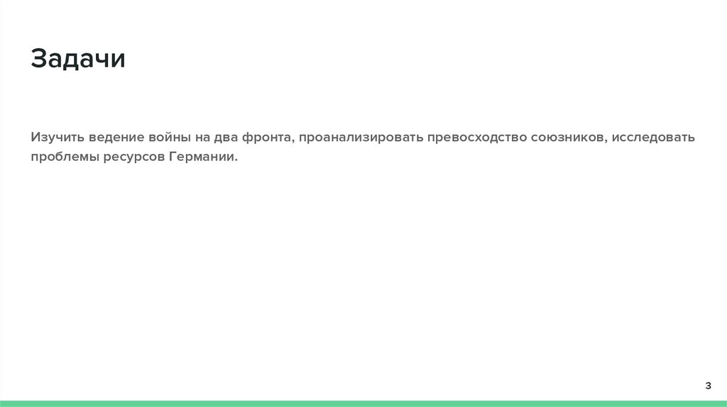 ЗадачиИзучить ведение войны на два фронта, проанализировать превосходство союзников, исследовать