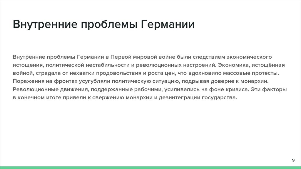 Внутренние проблемы Германии, такие как экономический кризис и социальные волнения, лишь