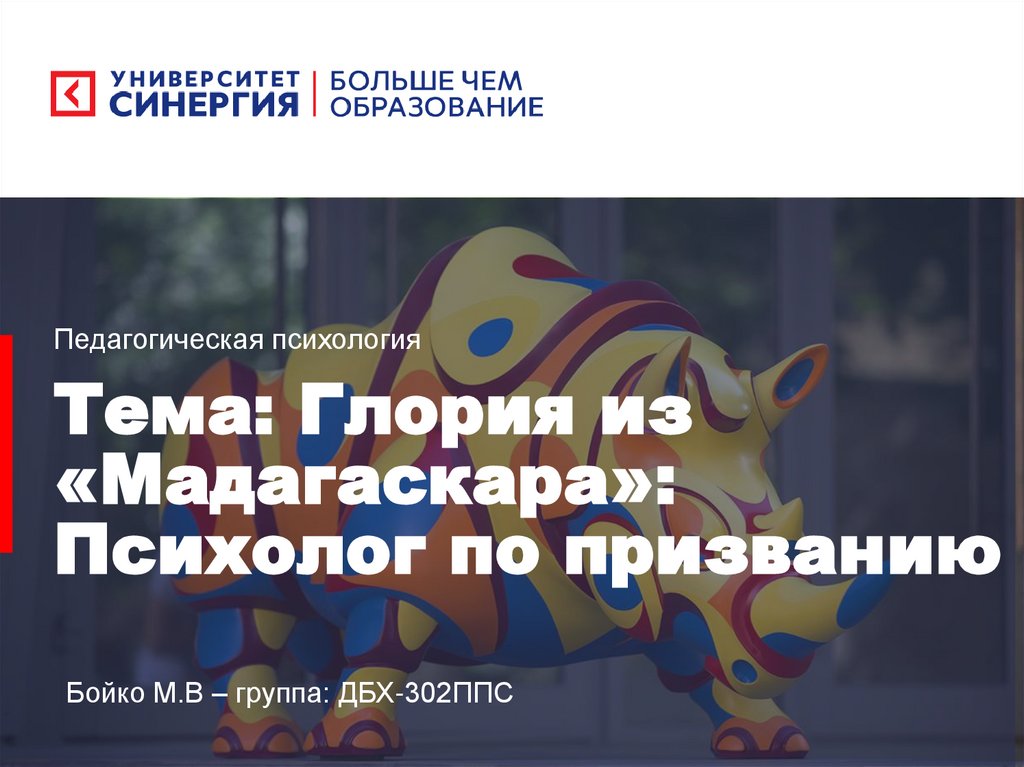 1. Глория — бегемот из мультфильма «Мадагаскар».2. Живёт в Центральном зоопарке Нью-Йорка.