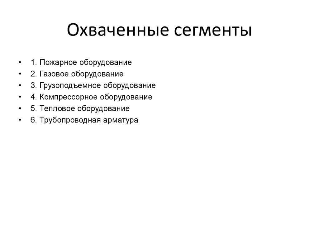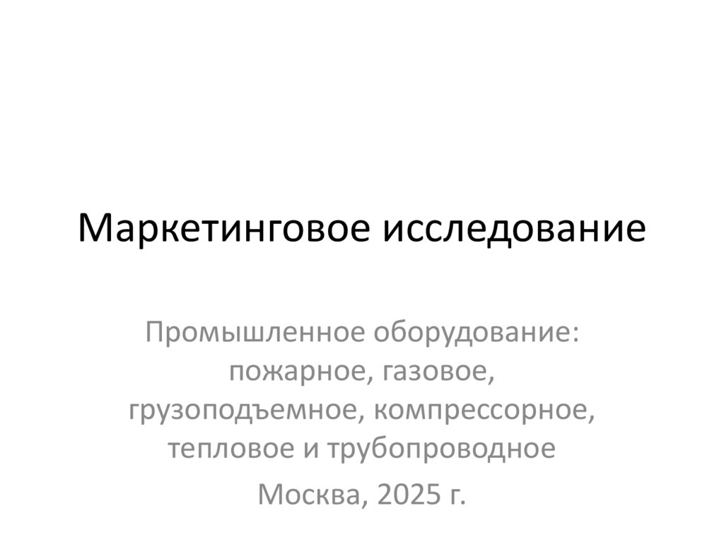 Маркетинговое исследование. Промышленное оборудование: пожарное, газовое, грузоподъемное, компрессорное, тепловое и др