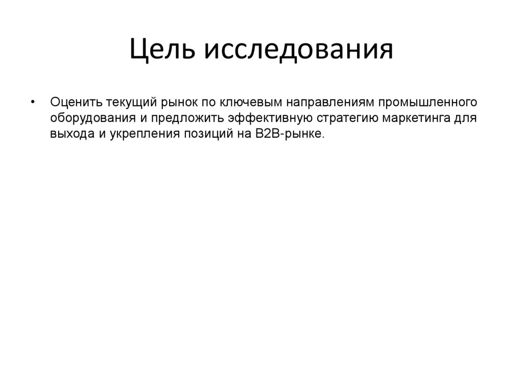 Цель исследованияОценить текущий рынок по ключевым направлениям промышленного