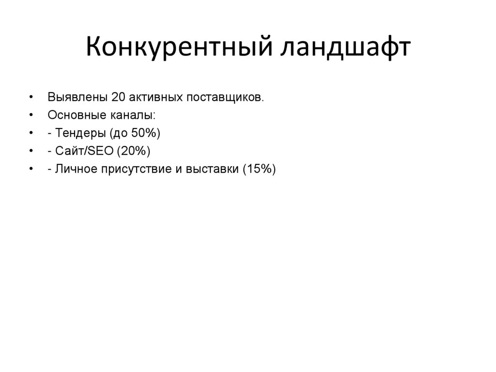 Конкурентный ландшафтВыявлены 20 активных поставщиков.