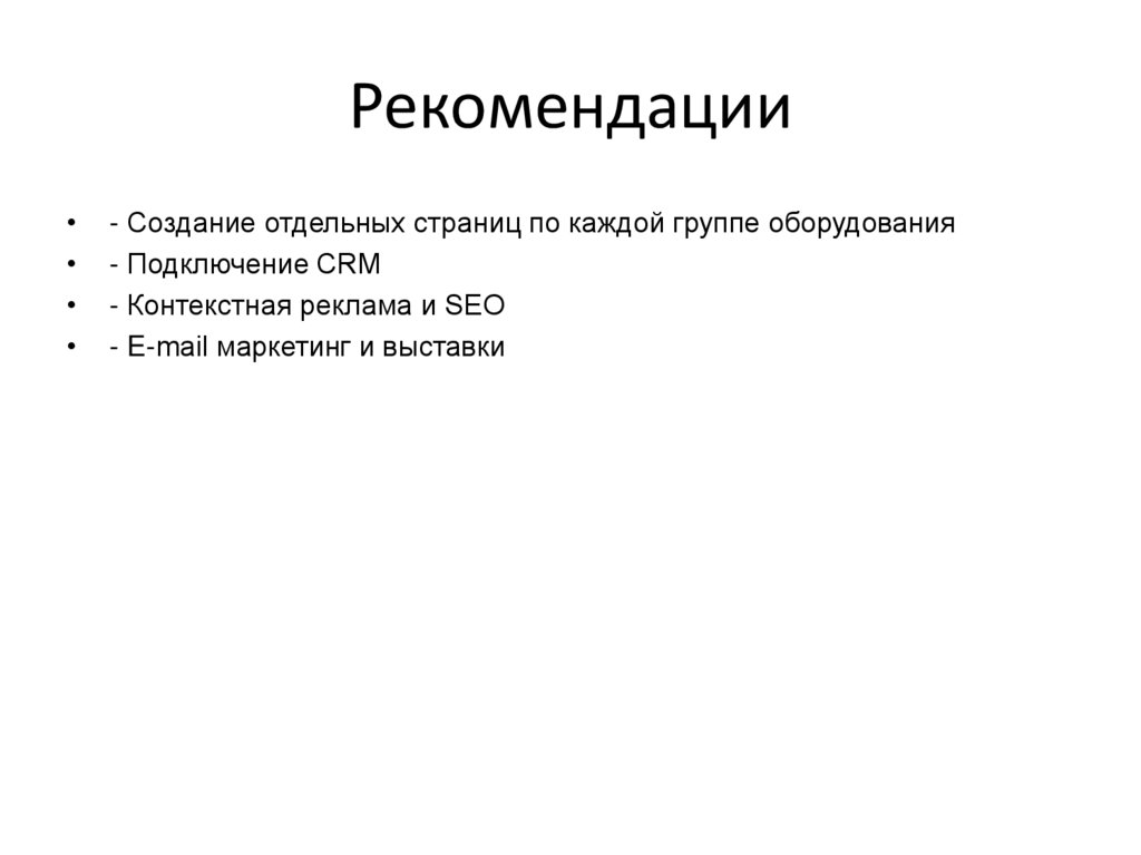 Рекомендации- Создание отдельных страниц по каждой группе оборудования