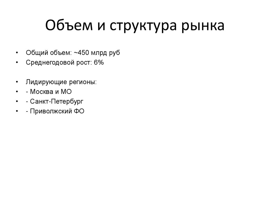 Объем и структура рынкаОбщий объем: ~450 млрд руб