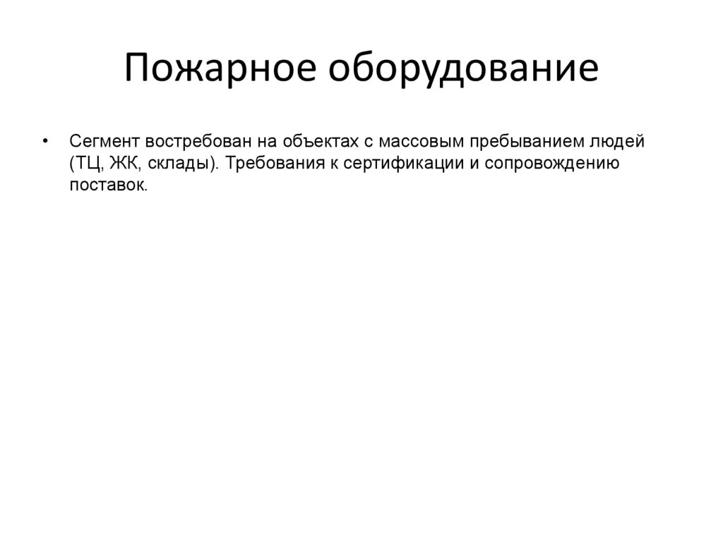Пожарное оборудованиеСегмент востребован на объектах с массовым пребыванием людей
