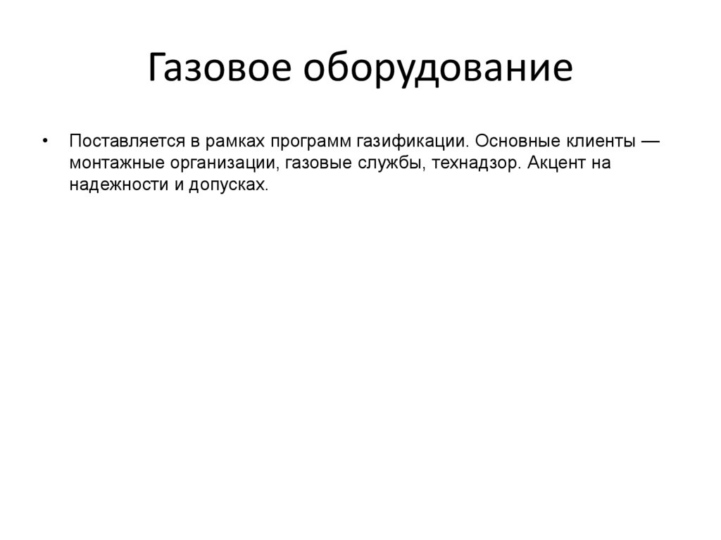 Газовое оборудованиеПоставляется в рамках программ газификации. Основные клиенты —