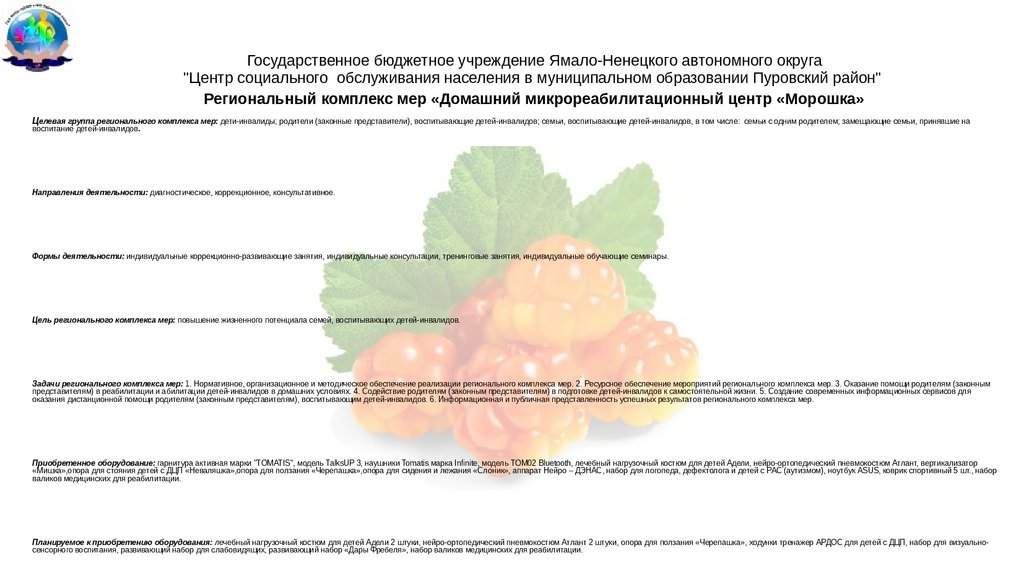Региональный комплекс мер «Домашний микрореабилитационный центр «Морошка»