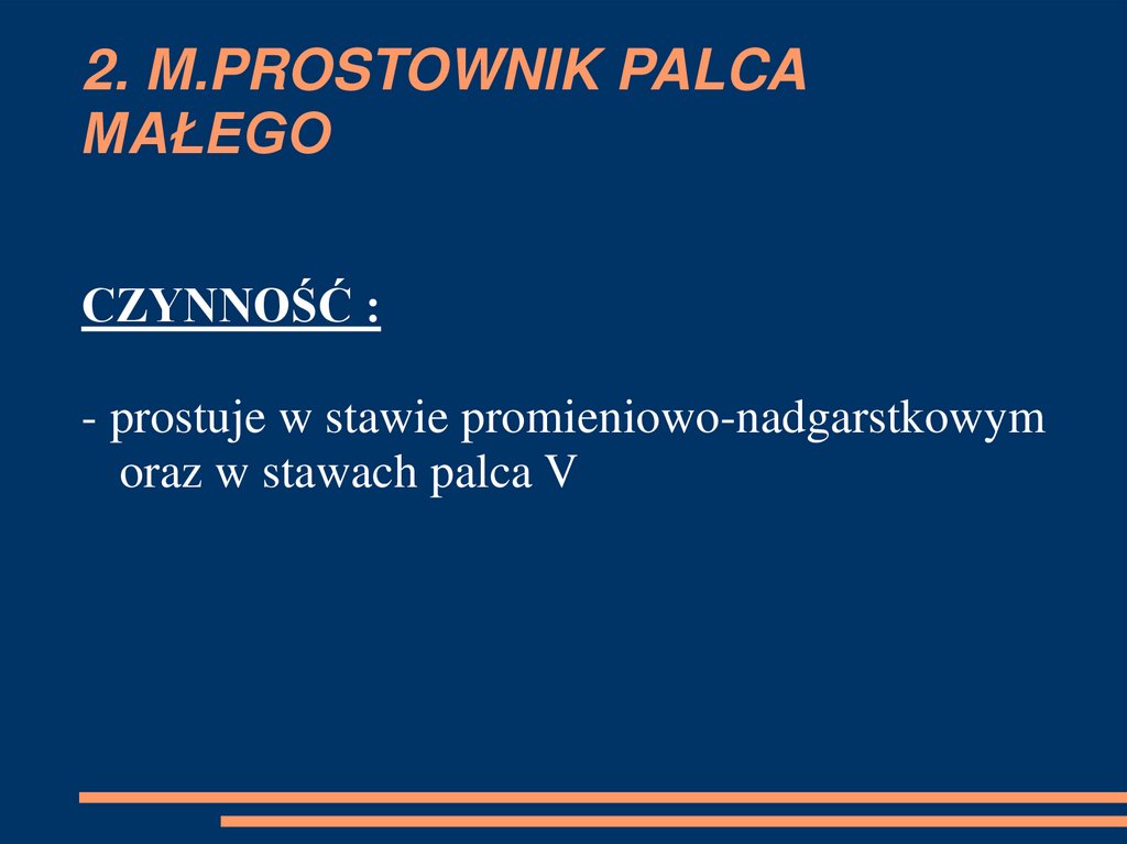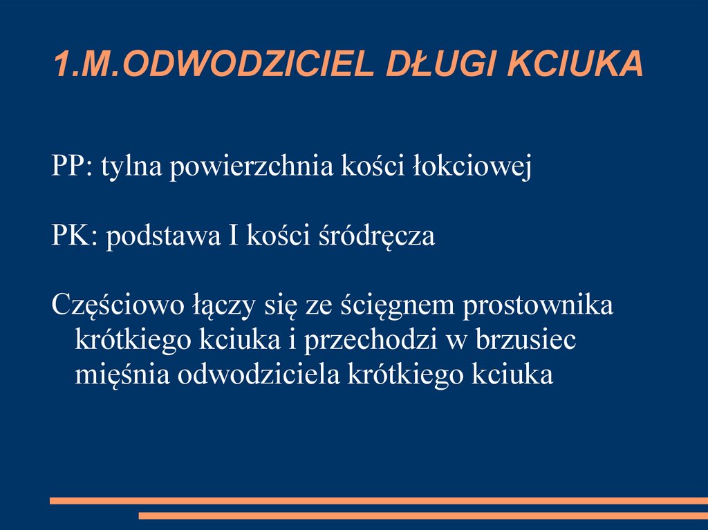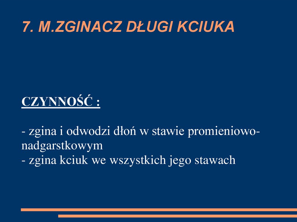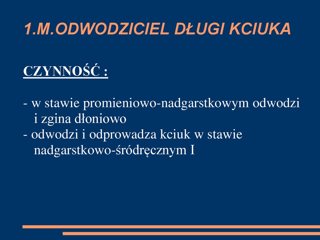 CZYNNOŚĆ :- prostuje kciuk w stawie śródręcznopaliczkowym
