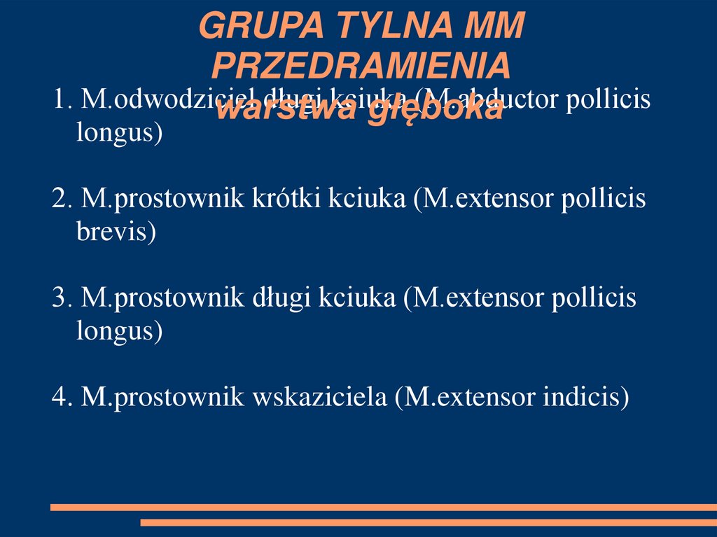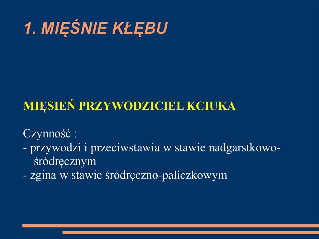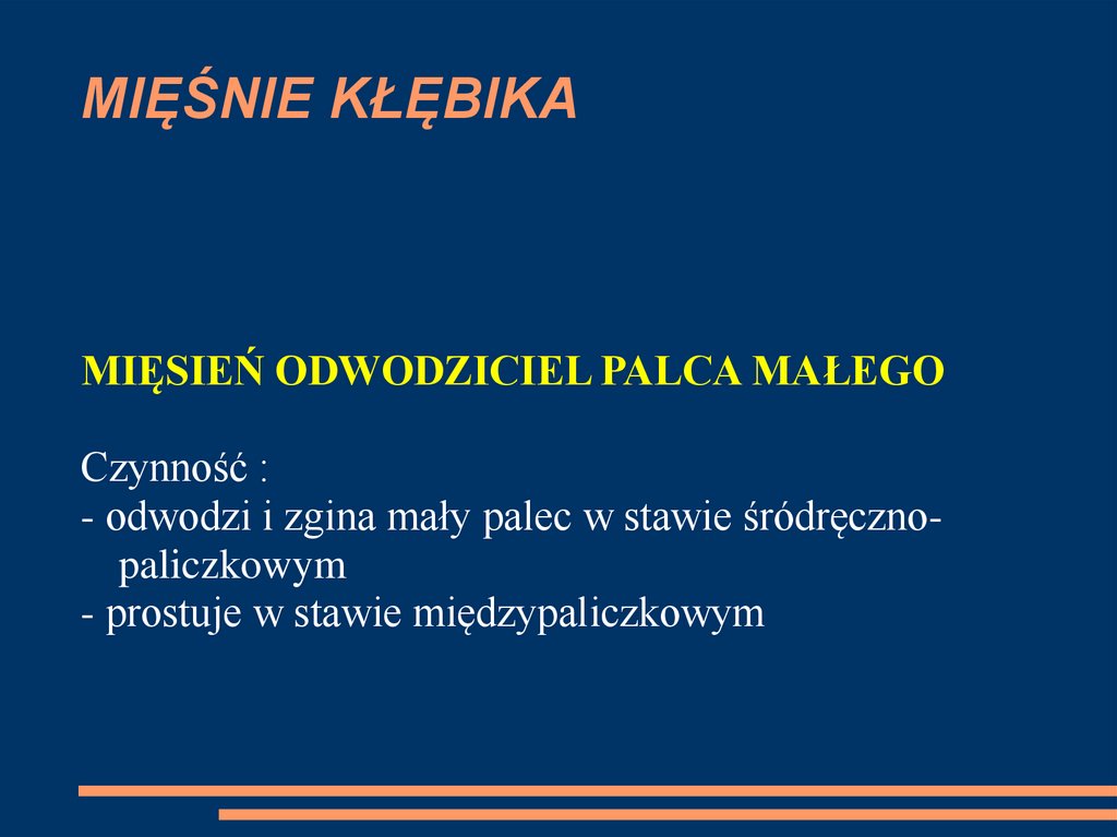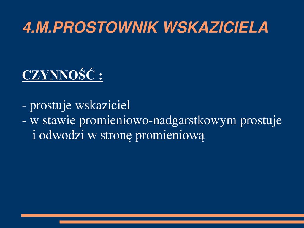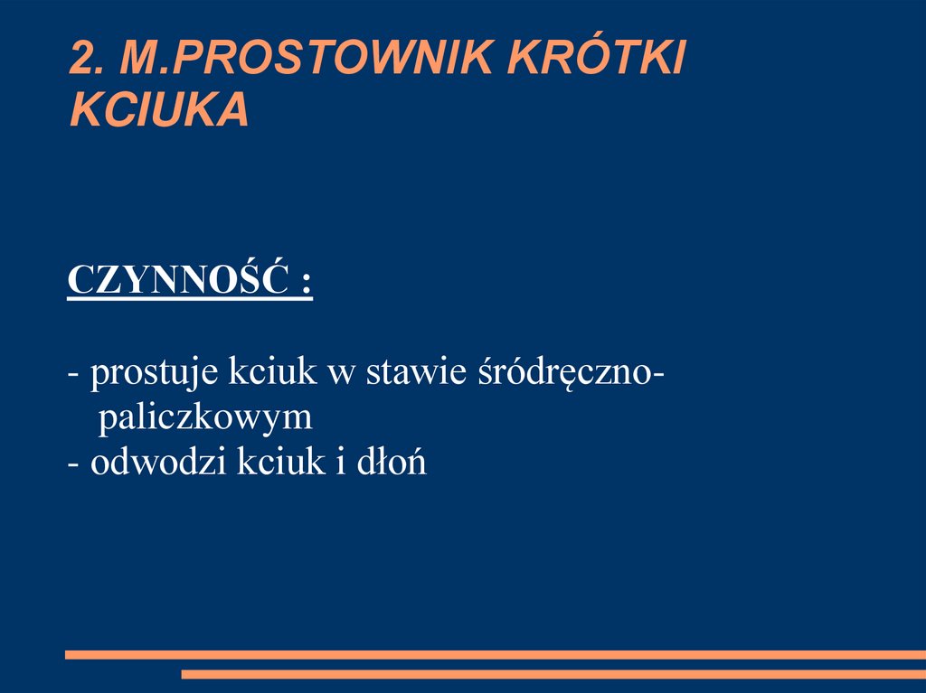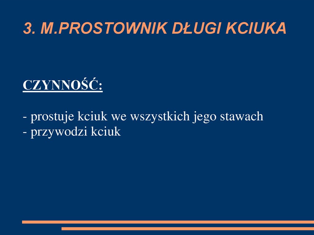 CZYNNOŚĆ:- prostuje kciuk we wszystkich jego stawach