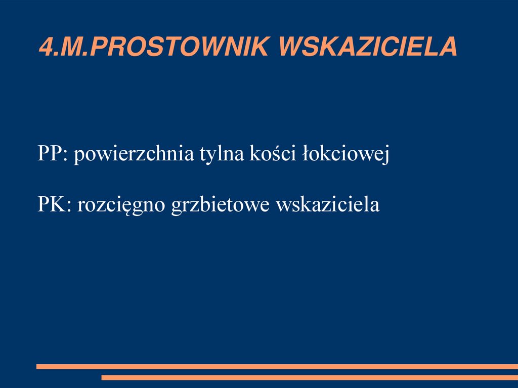PP: powierzchnia tylna kości łokciowejPK: rozcięgno grzbietowe wskaziciela