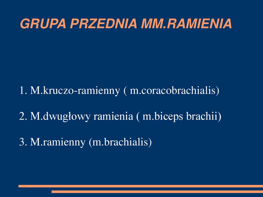 1. M.kruczo-ramienny ( m.coracobrachialis)2. M.dwugłowy ramienia ( m.biceps brachii)