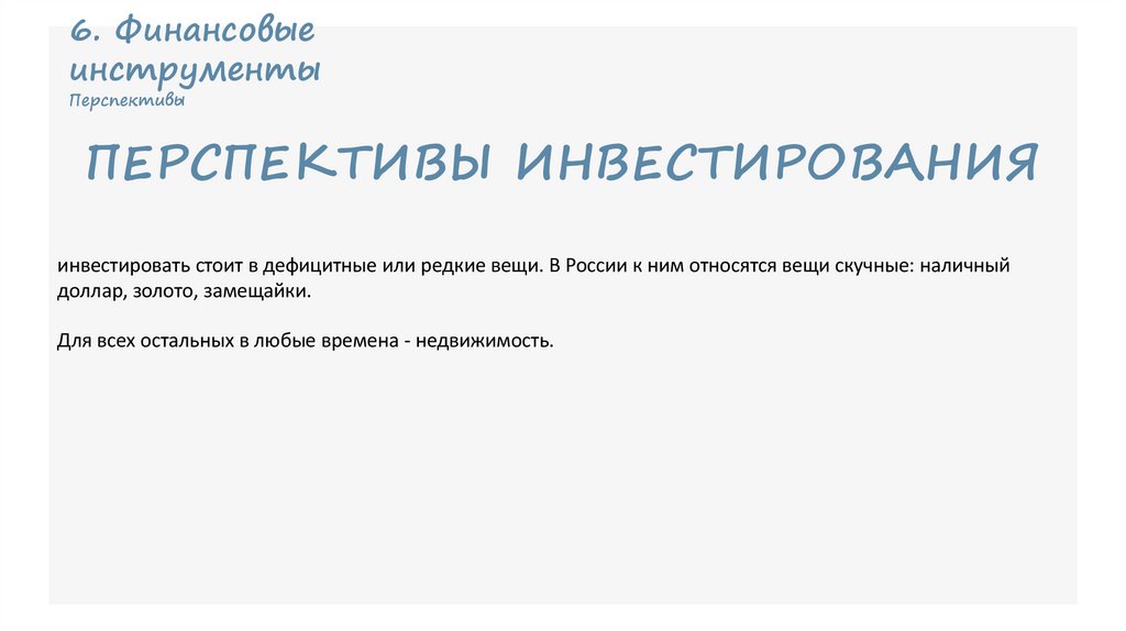 инвестировать стоит в дефицитные или редкие вещи. В России к ним относятся вещи скучные: наличный