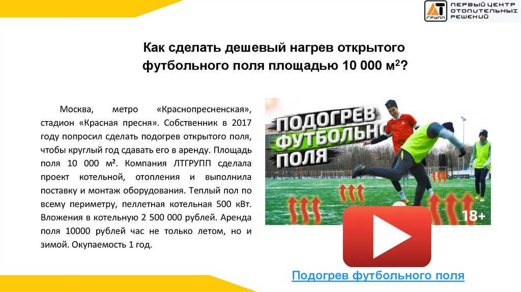 Как сделать дешевый нагрев открытогофутбольного поля площадью 10 000 м2?