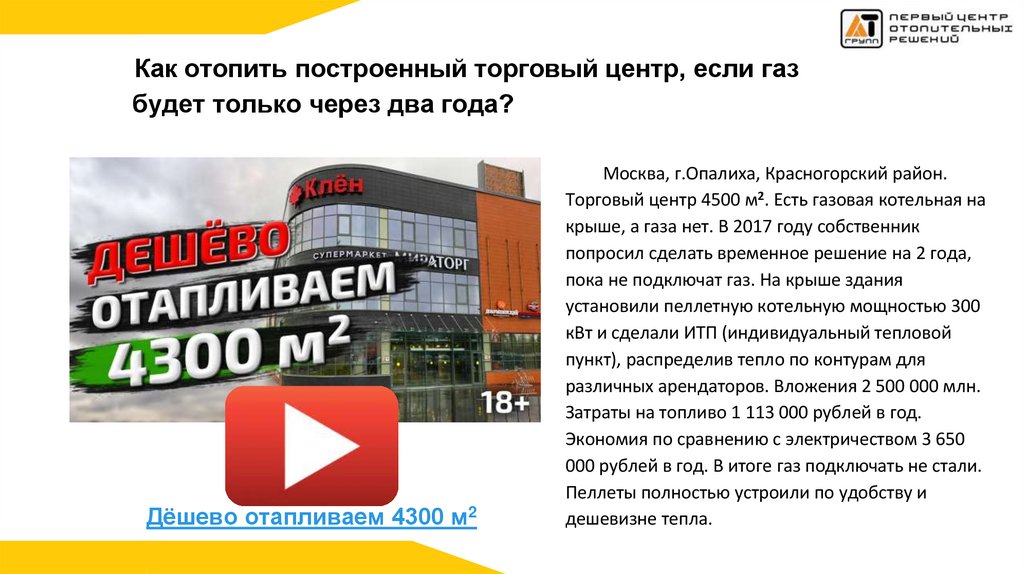 Как отопить построенный торговый центр, если газбудет только через два года?