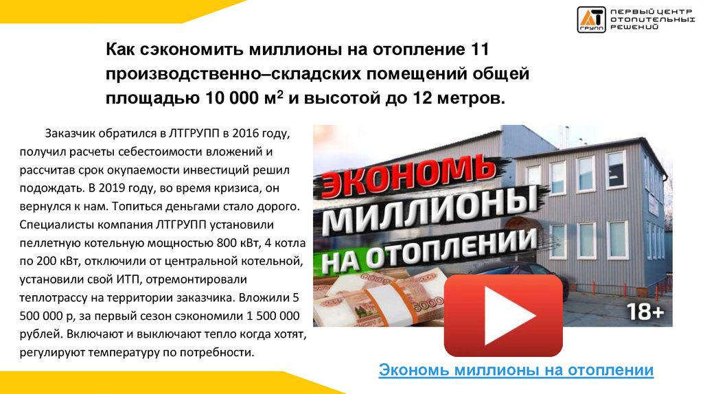 Как сэкономить миллионы на отопление 11производственно–складских помещений общей