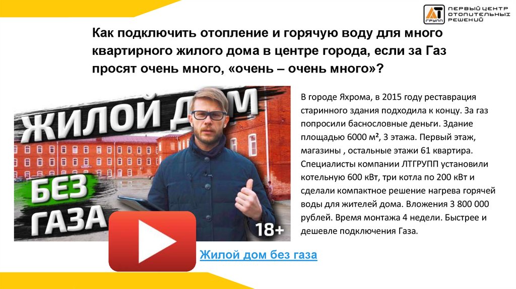 Как подключить отопление и горячую воду для многоквартирного жилого дома в центре города, если за Газ