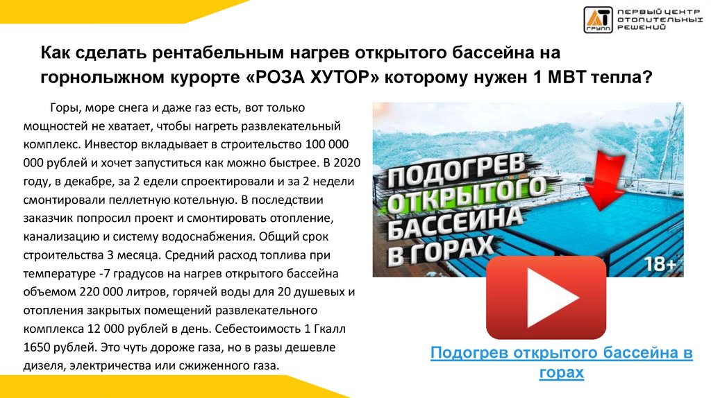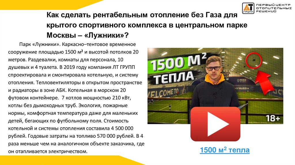Как сделать рентабельным отопление без Газа длякрытого спортивного комплекса в центральном парке