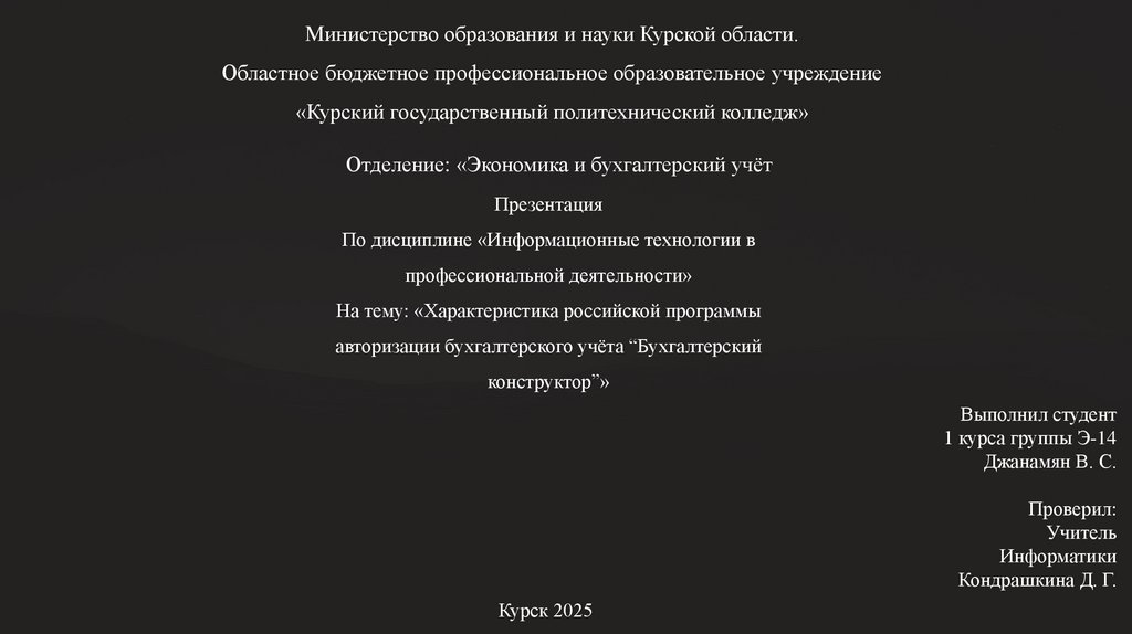 Министерство образования и науки Курской области.Областное бюджетное профессиональное образовательное учреждение