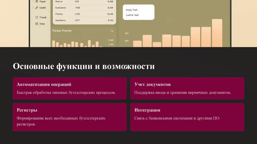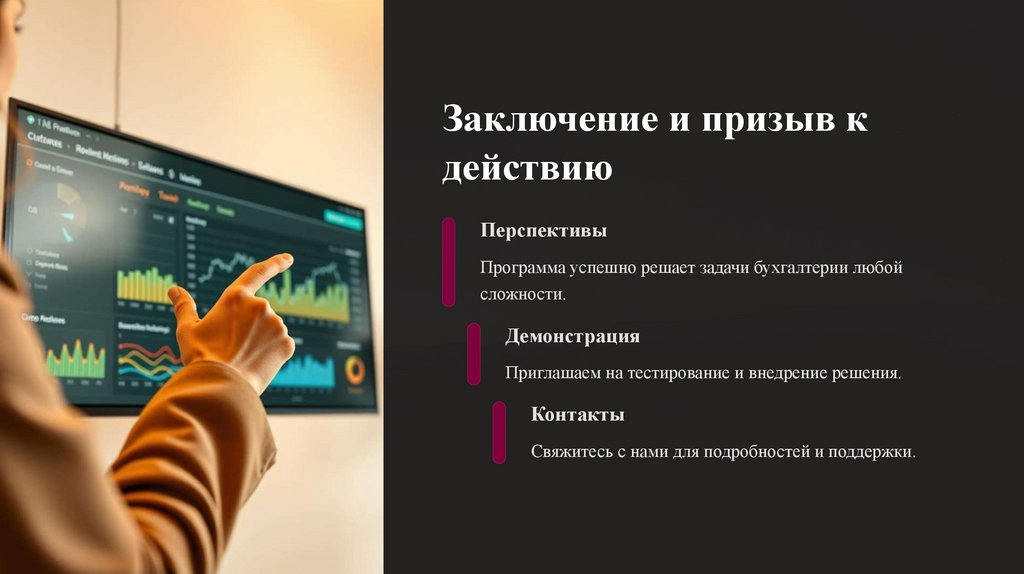 Цель — показать, как программа облегчает бухгалтерский учет.