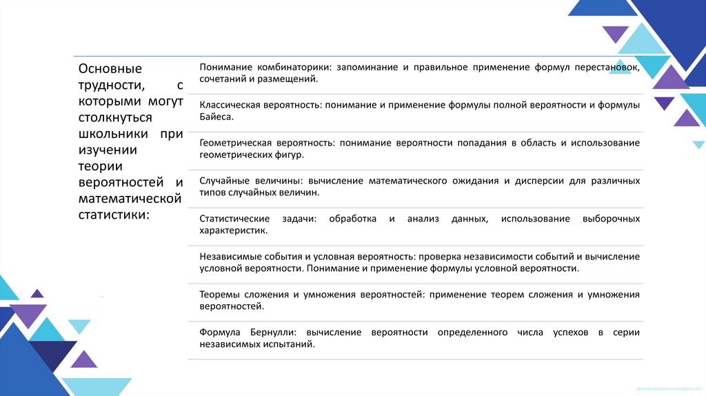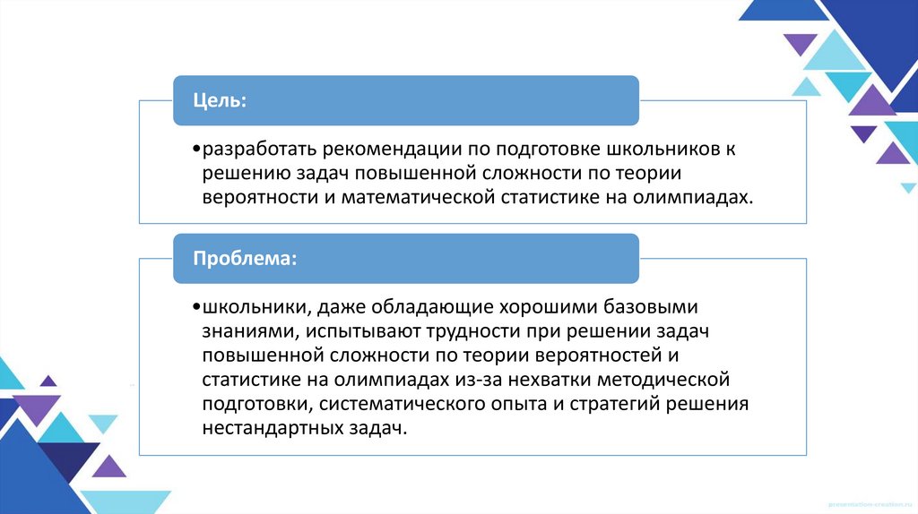 вероятности и математической статистике на олимпиадах.