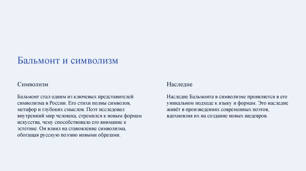 актуальными и вызывают интерес. Бальмонт не только оставил