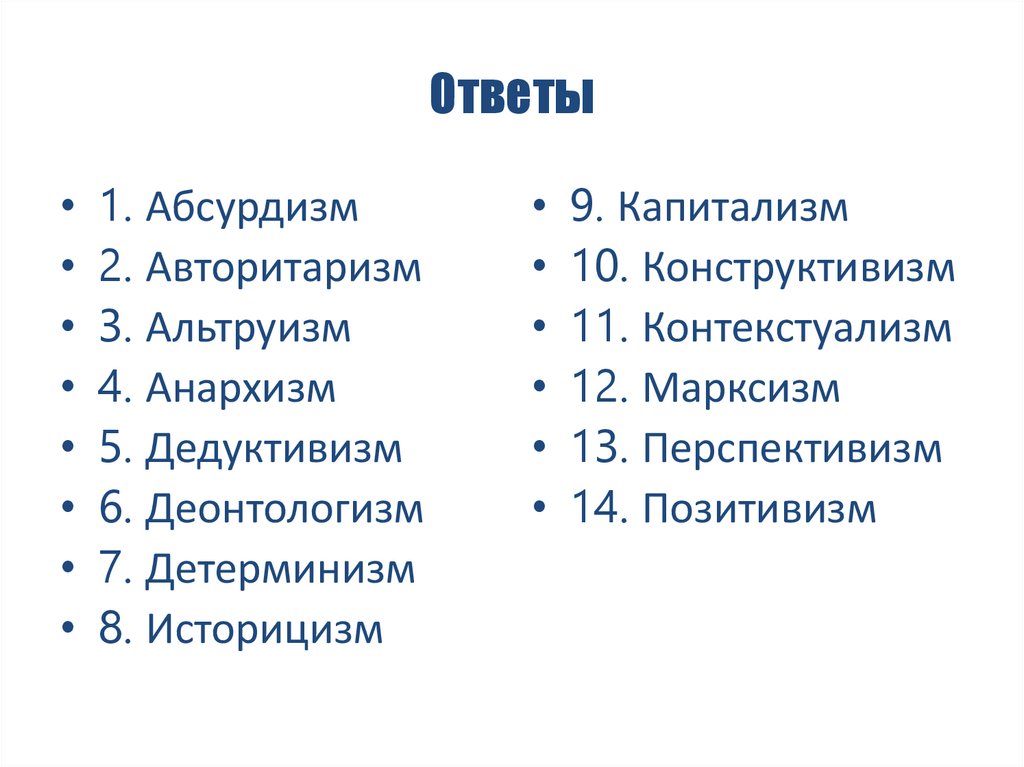 Ответы• 1. Абсурдизм