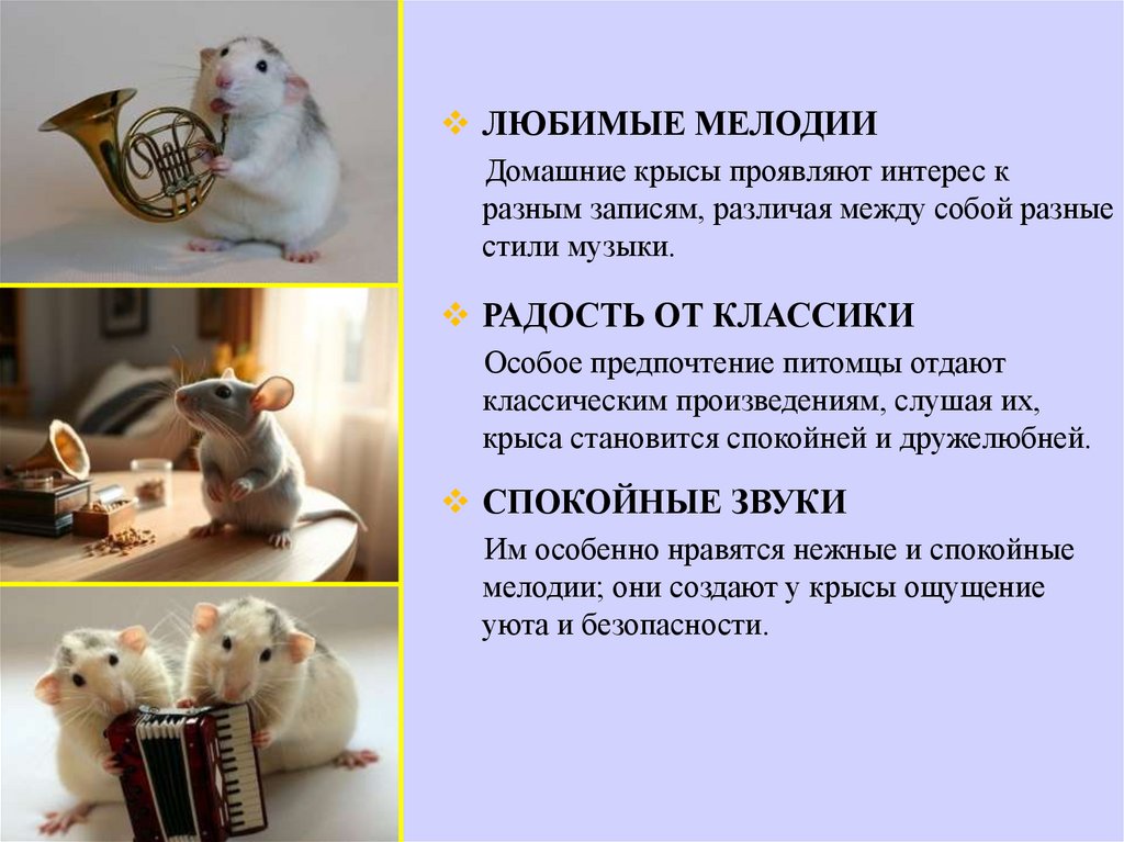 ЛЮБИМЫЕ МЕЛОДИИДомашние крысы проявляют интерес к