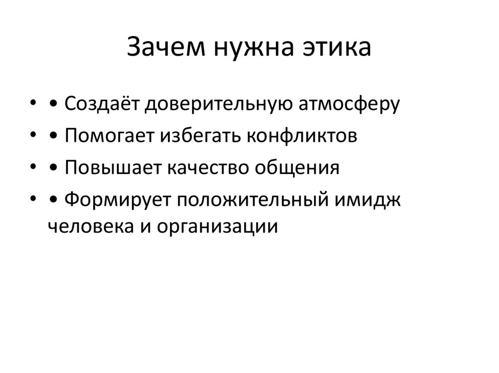 Зачем нужна этика• • Создаёт доверительную атмосферу