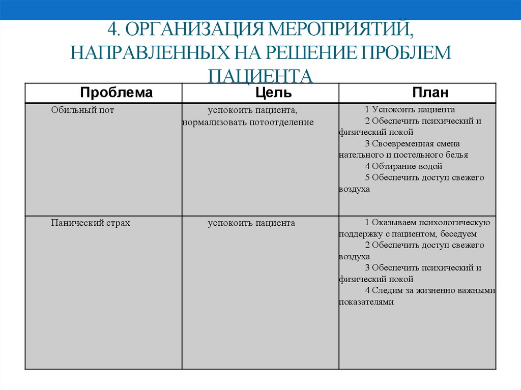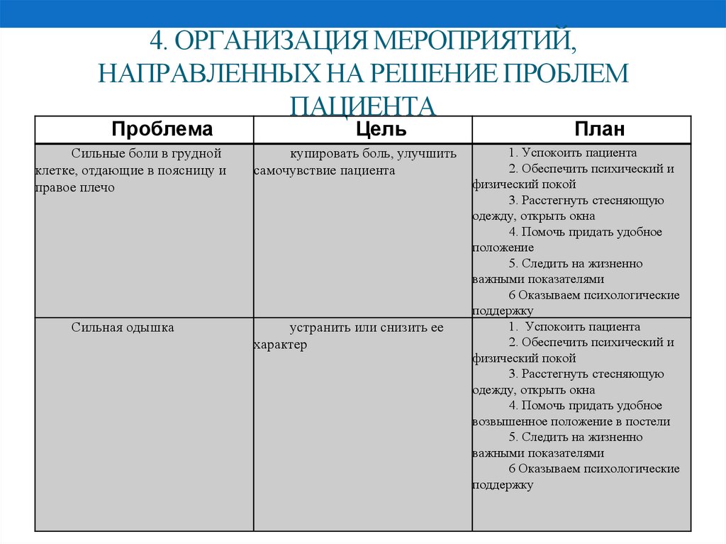 3. Составить план ухода с учетом приоритетности проблем пациента