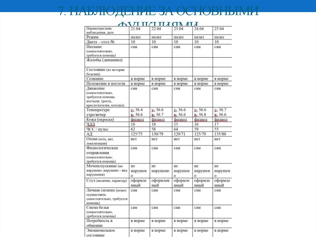 7. НАБЛЮДЕНИЕ ЗА ОСНОВНЫМИФУНКЦИЯМИ