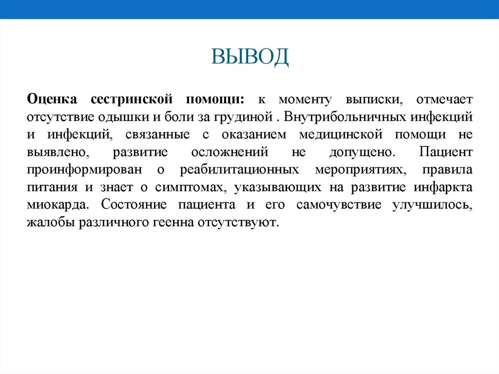 ВЫВОДОценка сестринской помощи: к моменту выписки, отмечает