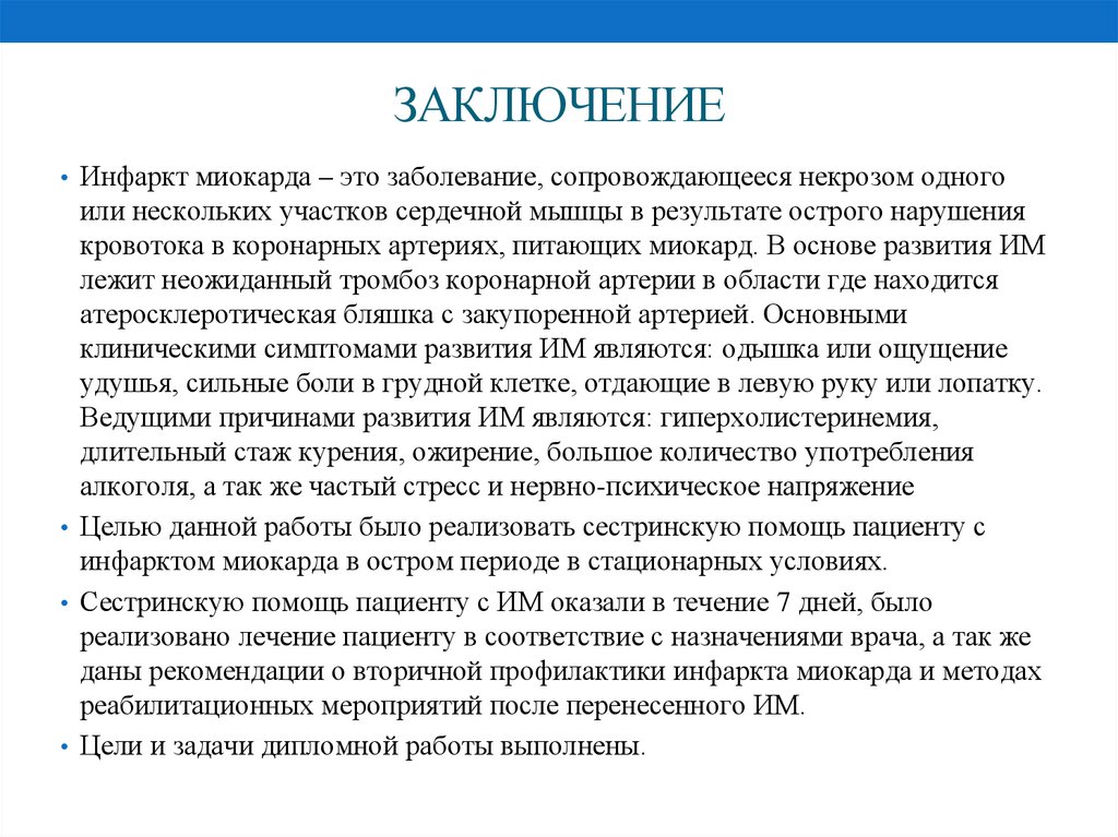 ЗАКЛЮЧЕНИЕ• Инфаркт миокарда – это заболевание, сопровождающееся некрозом одного